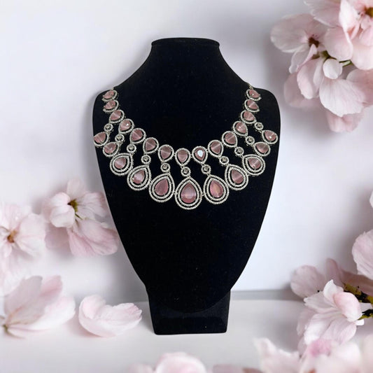 Pink Gemstone necklace with drop earrings, Indian Jewelry, great for special occasions