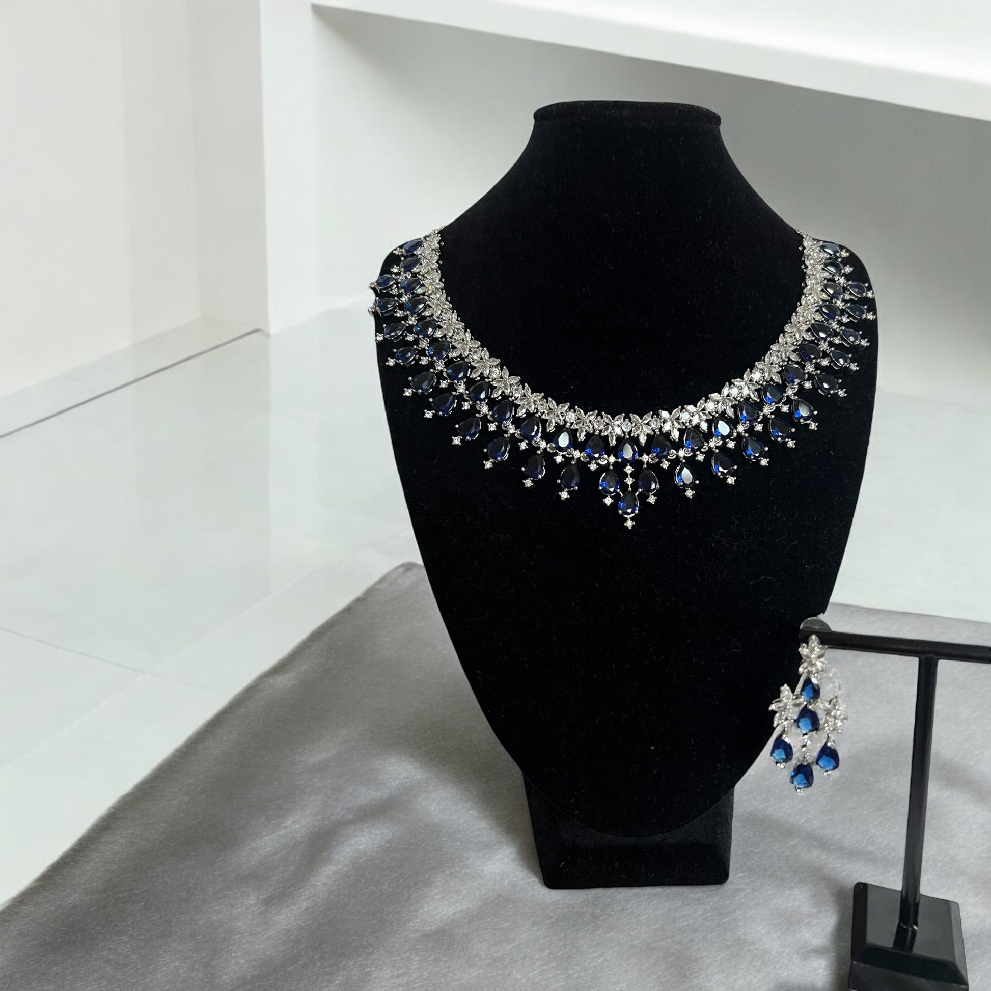 Floral Sapphire Blue Necklace Set