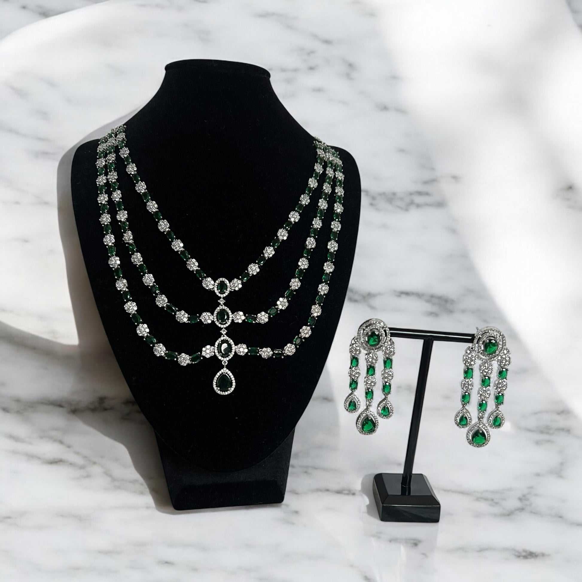 The necklace is a great accessory to add to any jewelry collection. The layered gemstone design and green color make it a versatile piece that can be worn for both casual and formal occasions. The matching earrings add a cohesive and complete look to the necklace, making it a great choice for those who want to create a matching set.