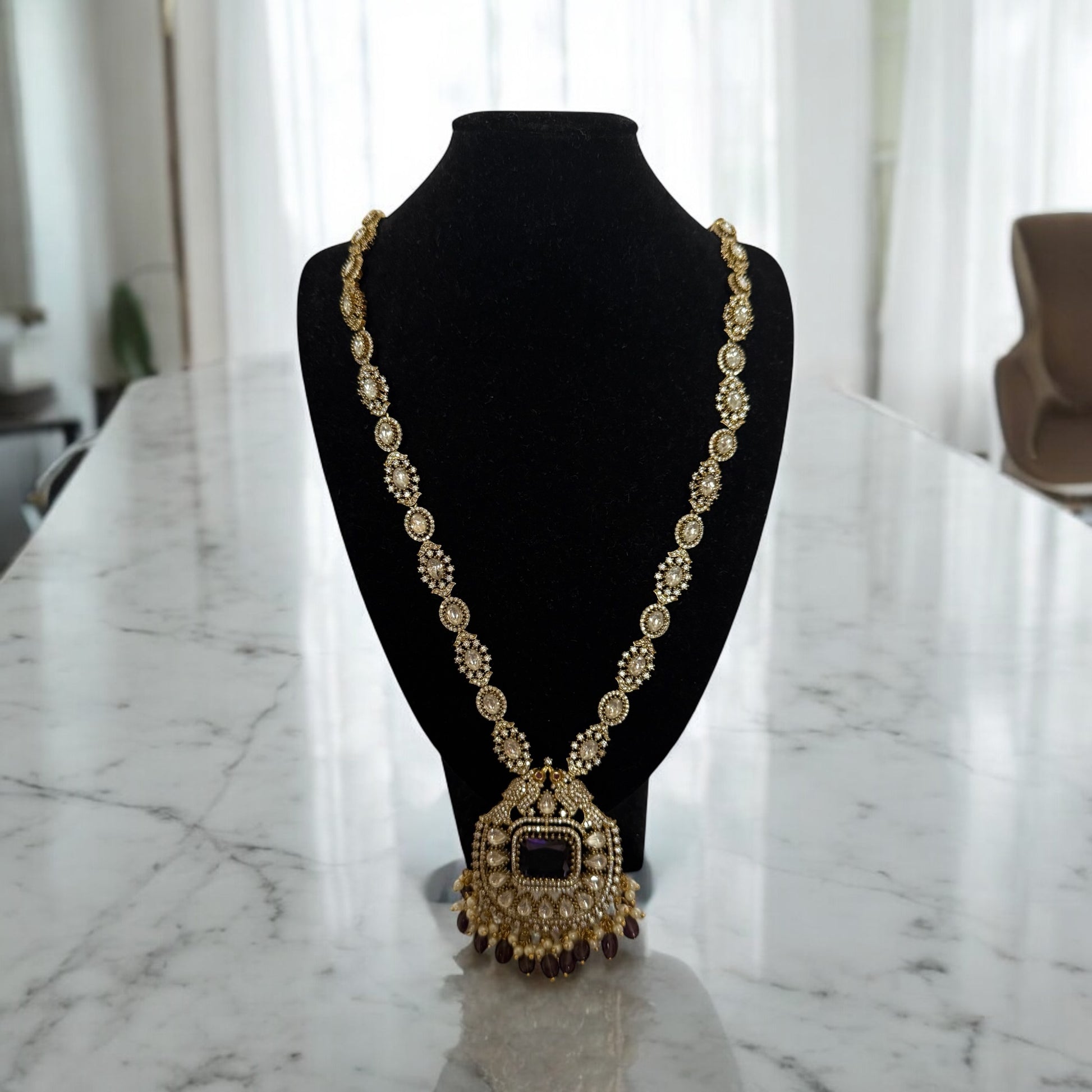 - Ornate kundan necklace with beaded fringe